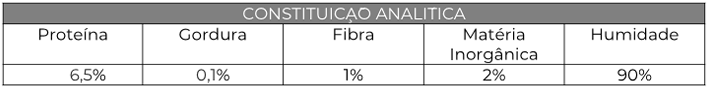 Salmão 43,95%, Atum 30,48%, Frango 10,99%, Óleo de anchova 2%, Amido (mandioca) 7,53%, Óleo de linhaça 1,10%. Aditivos: Taurina (3a370) 2,51%, Vitaminas (A3a672a, B2 3a825i, B3 3a314, B5 3a841, D3 3a671, E 3a700) 0,01%, Goma xantana (E 415) 1,43%.